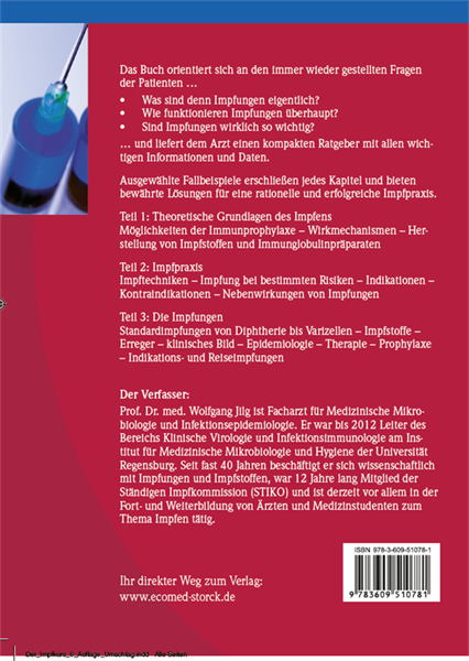 Wen impfen? Womit und wie? Wie sieht es aus mit Impfungen in der Schwangerschaft, bei Immunsupprimierten, bei chronisch Kranken? Was ist eine „normale Impfreaktion“ und was eine Impfkomplikation? All diesen Fragen geht der mittlerweile bereits in 7. Auflage verfügbare „Impfkurs“ auf den Grund – angenehm lesbar, mit vielen sehr anschaulichen Fallbeispielen aus der Praxis, Fragen und Antworten, Kurz-Diskussionen und topaktuellen Hintergrundinformationen für Ärzte und medizinisches Personal.